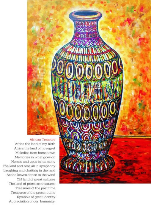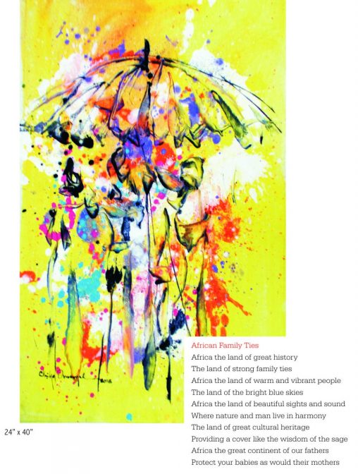 “World class painter with a passion for colors. Simple and confident in his approach, making his works appear intelligible, yet with an underlying message which evokes a dialogue with the audience. D’Artist Chike Onuorah depicts situations in everyday life through impressionistic brush strokes and pallete knife rendition of colours, articulating his theme with expressive fluidity in diverse dimensions. A recording artist with theatrical exploits. A timeless innovator with infinity in his mind, his artistic style ranges from lyrical to visual expressions cascading down the hierarchy of vicious impressionism.” – Professor Cliff Nwanna – N.A. University Awka, Anambra State, Nigeria